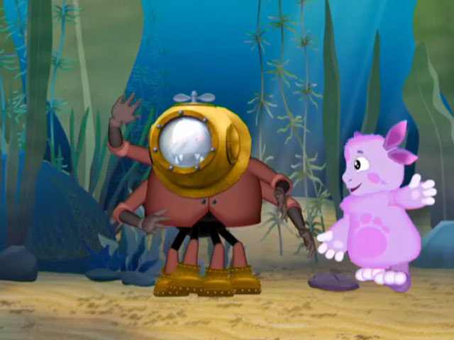 Любимая бабушка Шнюка просит его, чтобы он нарисовал для нее подводный мир. В этой просьбе нет ничего странного, потому что все предки Шнюка были водолазами. У него и снаряжение есть, и костюм водолазный. Одного ему не хватает: смелости. Шнюк боится воды, его охватывает ужас при одной мысли, что надо спуститься в глубину. А бабушка ждет прекрасную картину... К счастью для Шнюка, Лунтик и Кузя приходят ему на помощь, и благодаря им он становится настоящим водолазом. Язык: Русский
